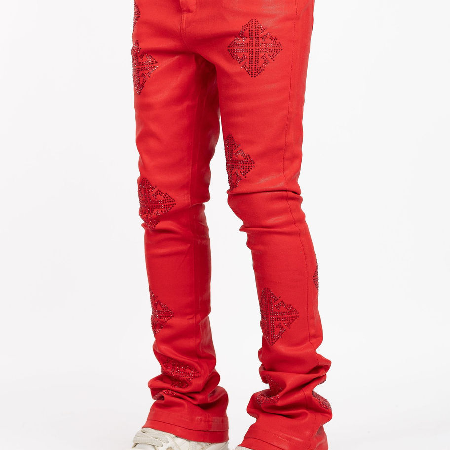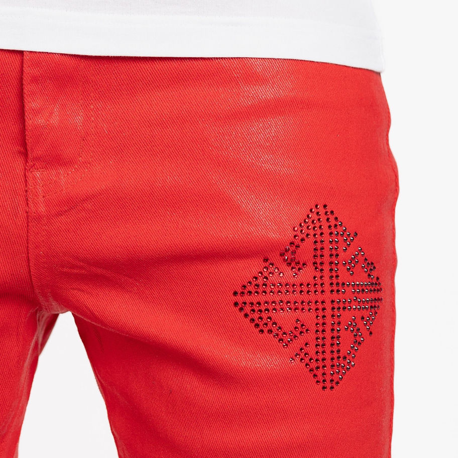Command attention with the Crimson Red Icon Embellished Denim. These striking jeans showcase intricate, geometric icon patterns accented with carefully placed embellishments for an eye-catching touch. Crafted from premium-quality denim, they deliver both style and comfort, ideal for any statement-making look. - Rich crimson red with tonal embellishments - Signature GUAPI icons for a unique, branded touch - Slim fit for a tailored, modern look - High-quality denim with a comfortable stretch - Ideal for striking streetwear or upscale casual ensembles - Classic button closure and zip fly Complete your wardrobe with these uniquely detailed jeans for an unmistakable touch of elegance and flair. ###### Size recommendations - Size XS = Waist 28 - Size S = Waist 30 - Size M = Waist 32 - Size L = Waist 34 - Size XL = Waist 36 The model is wearing size 32 Model height 189 cm (5,9) model weight 78kg (171lbs)