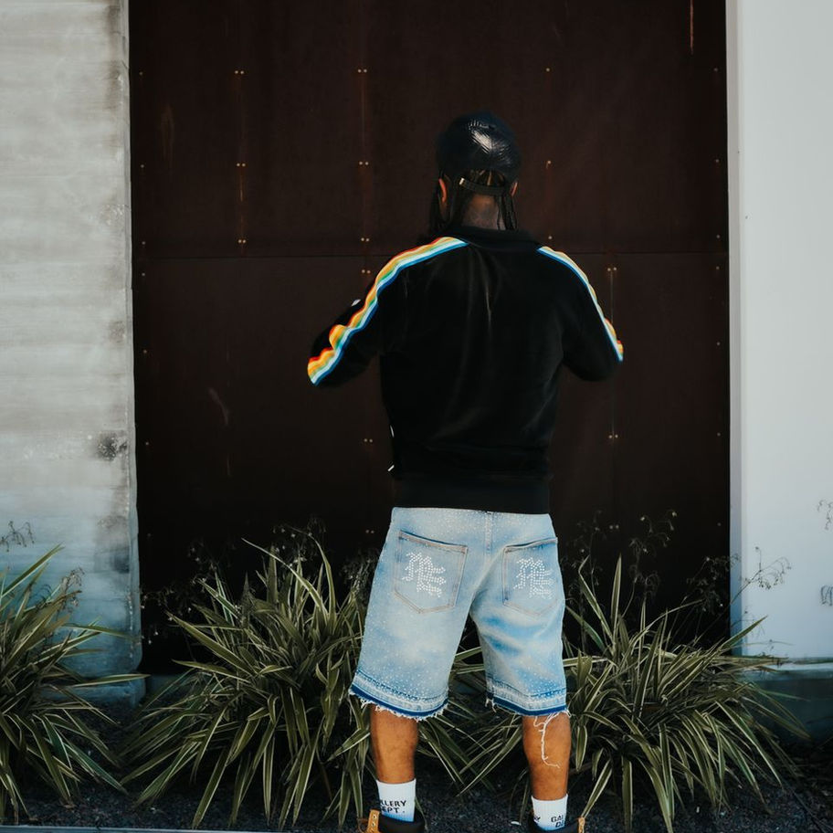 Mixed Emotion 'ME' Rhinestone Denim Shorts
