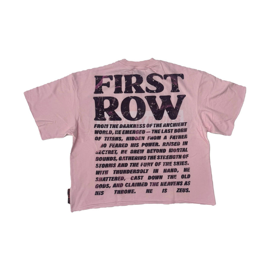 Pink tee featuring a rhinestone Jesus face graphic with 'Rising From Ruins' detail.
